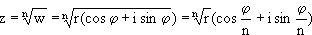 Man zieht aus einer komplexen Zahl w die n-te Wurzel, indem man aus dem Betrag