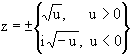 ( u<0 ) sind die Quadratwurzeln positiver reeller Zahlen.