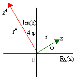 Man potenziert eine komplexe Zahl mit dem Exponenten n, indem man den Betrag